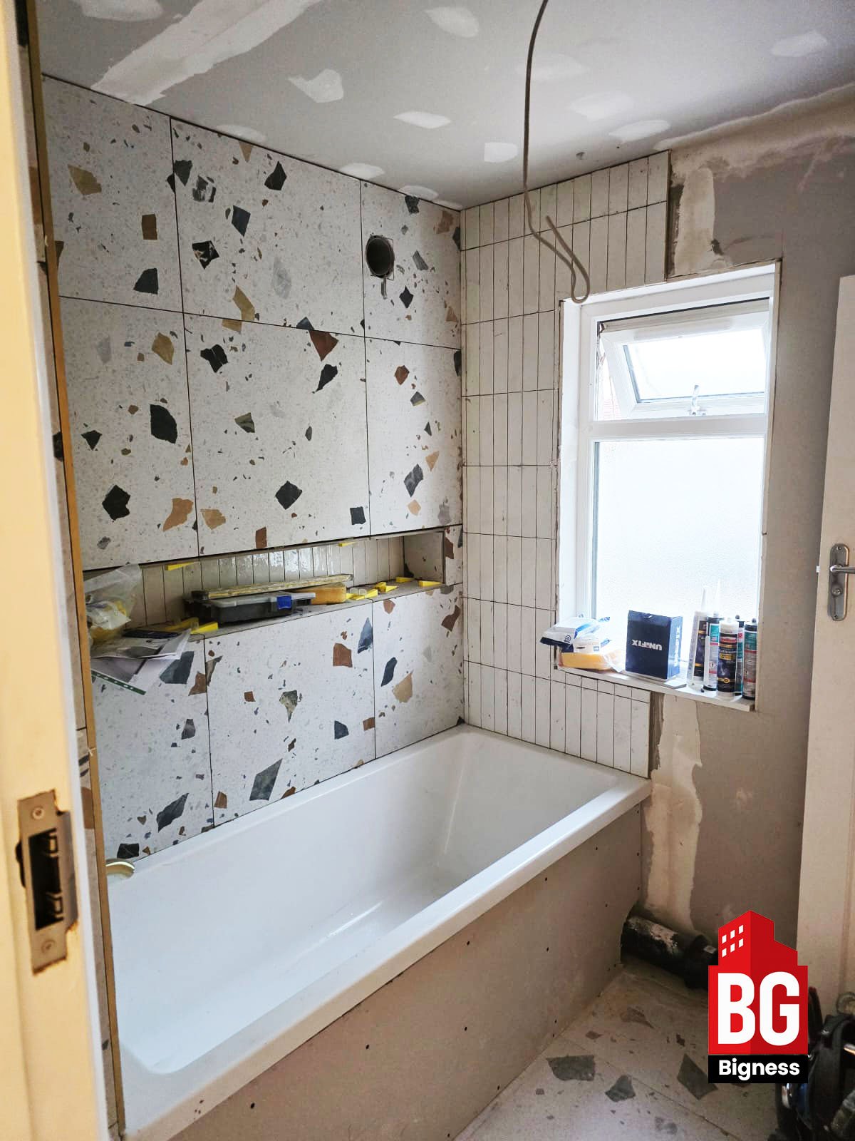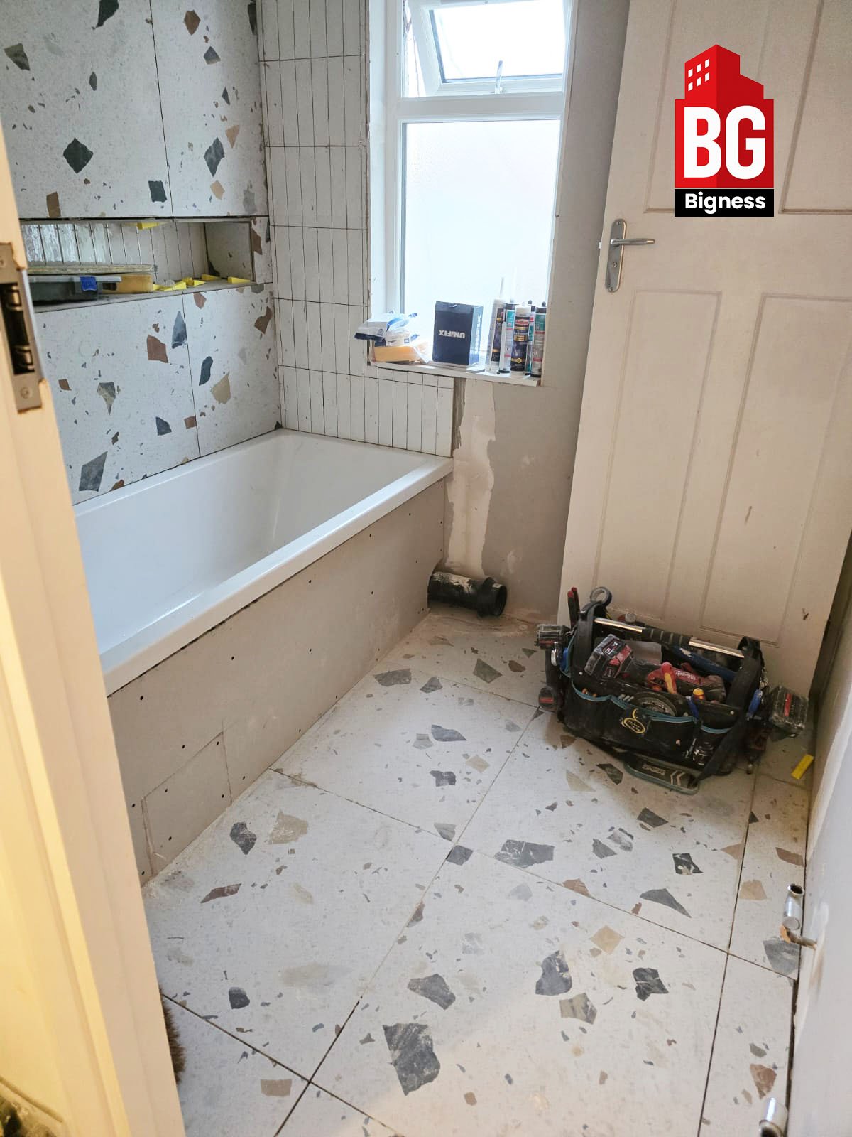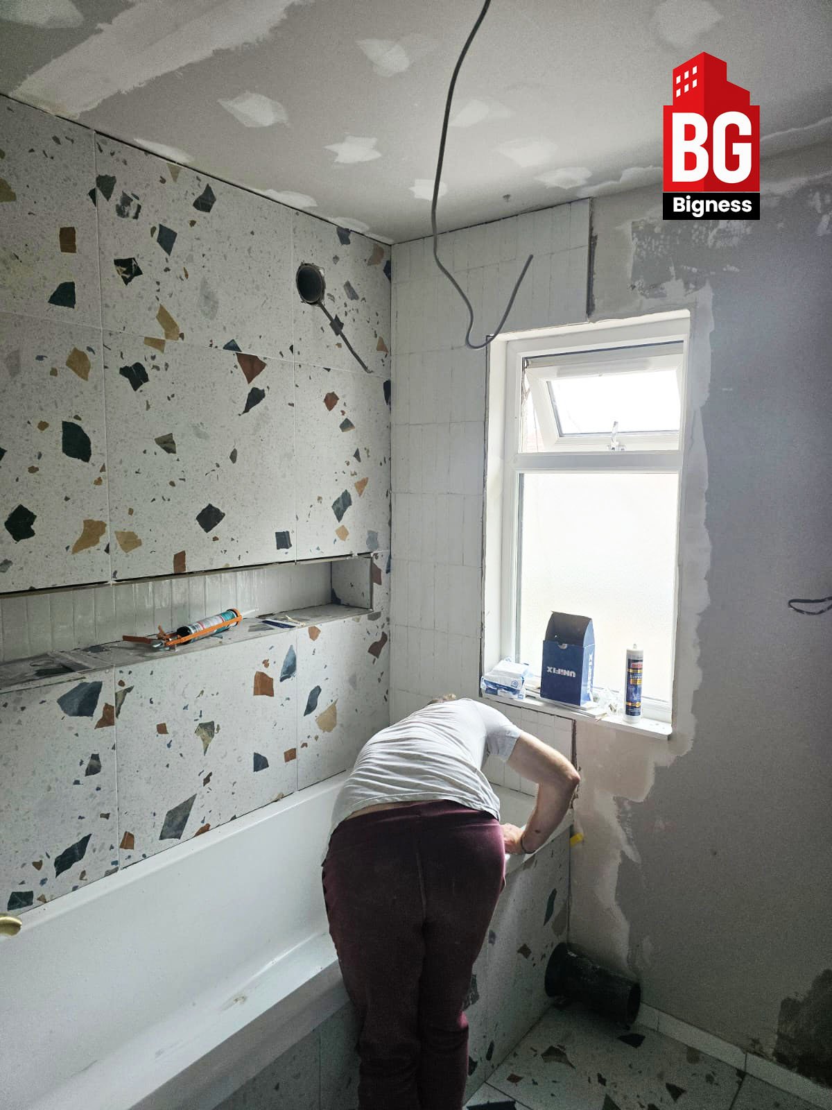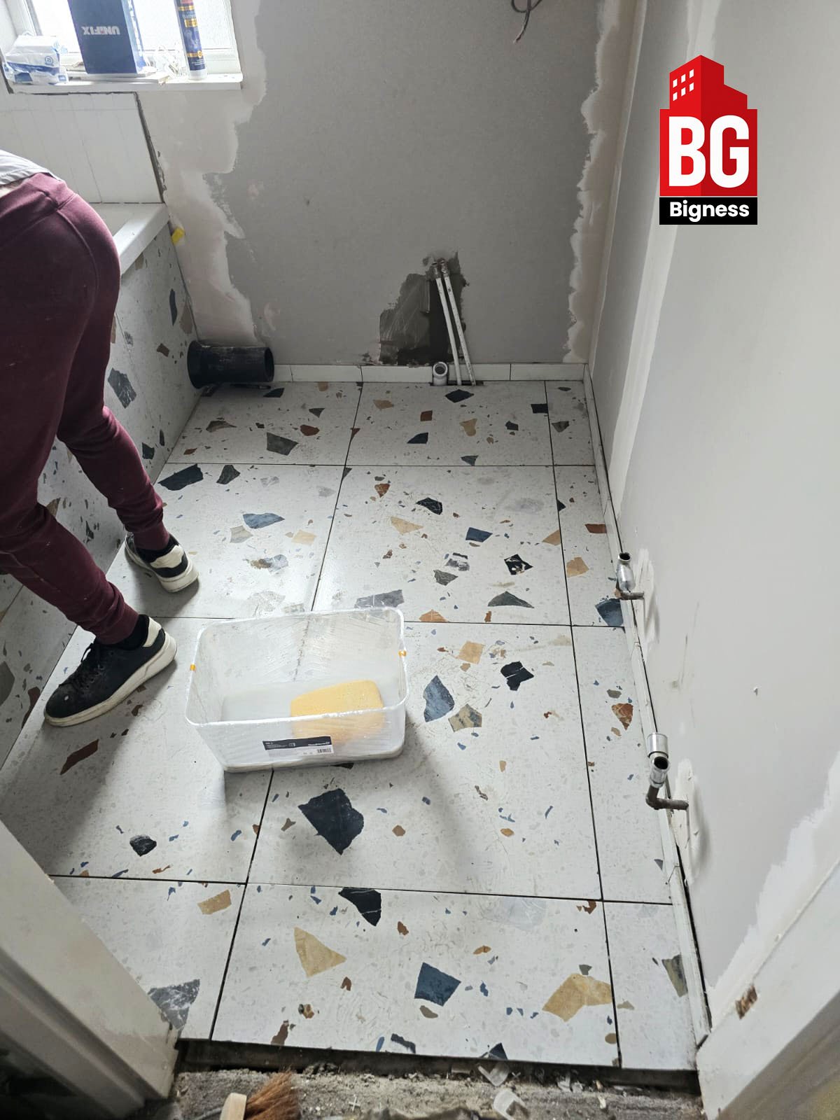 - Full bathroom strip-out and surface preparation.