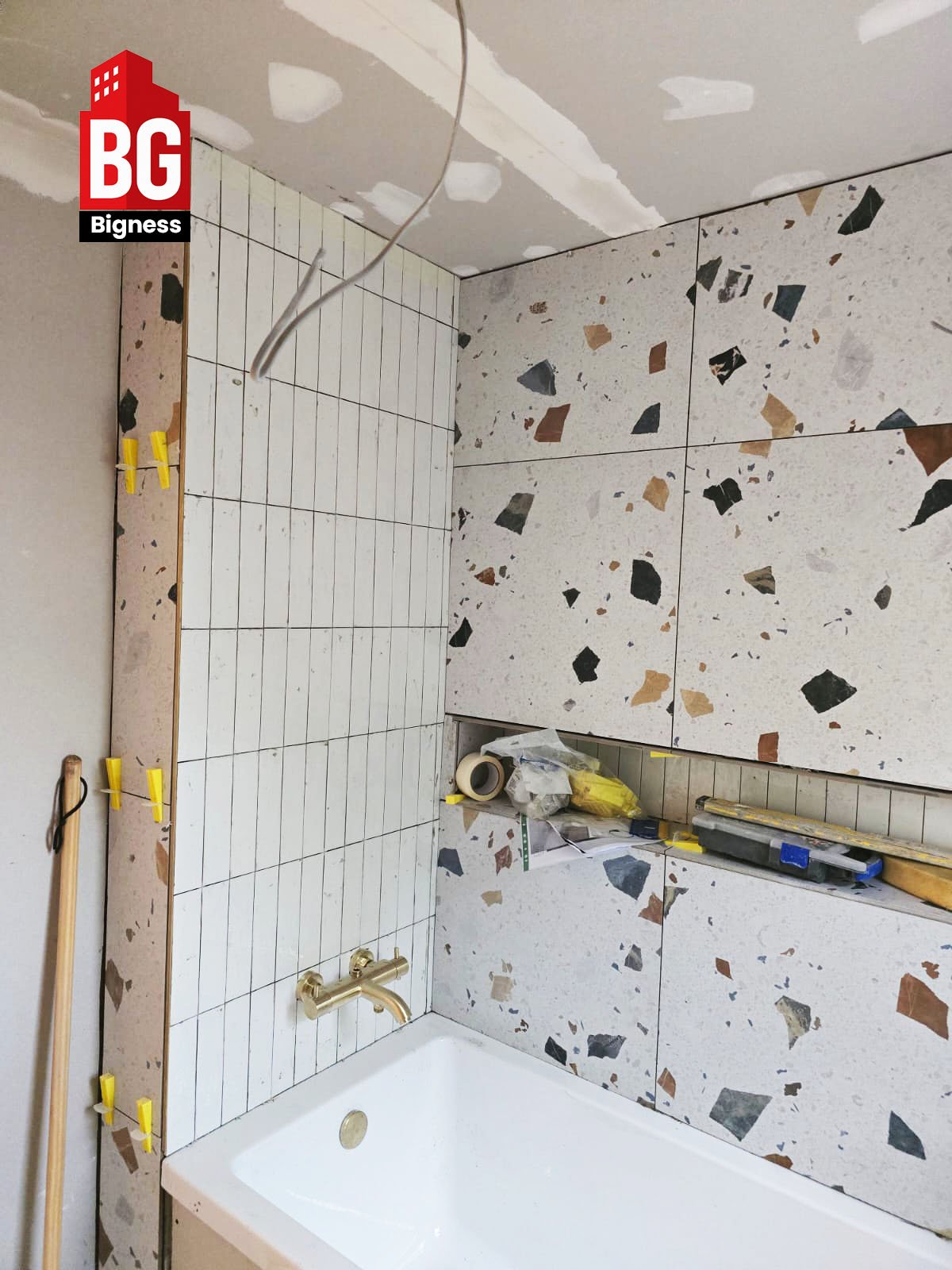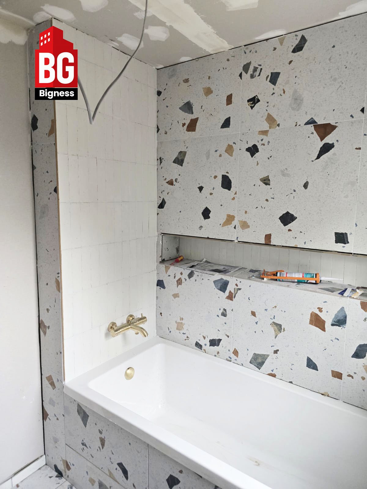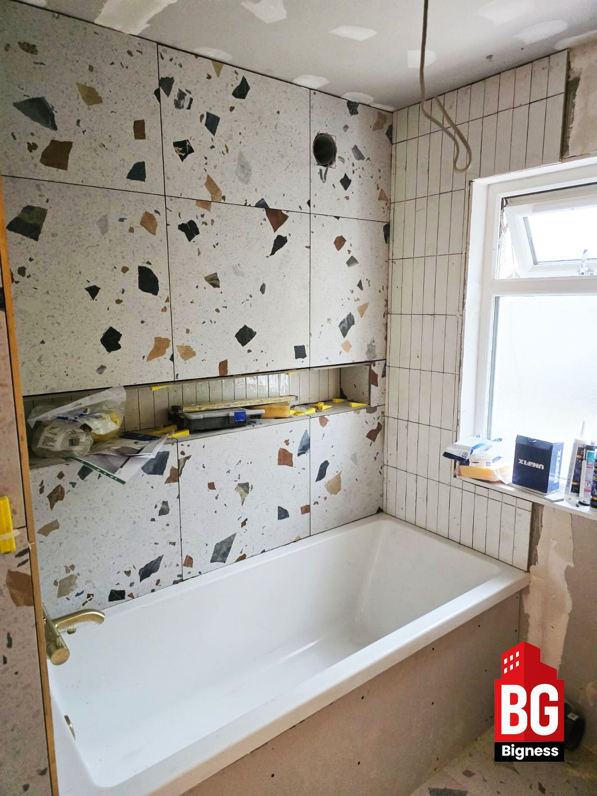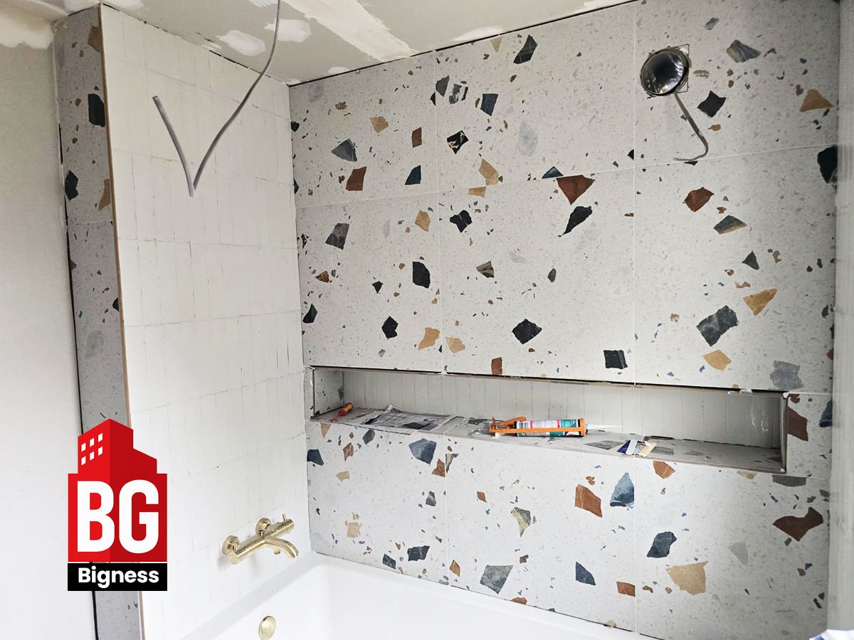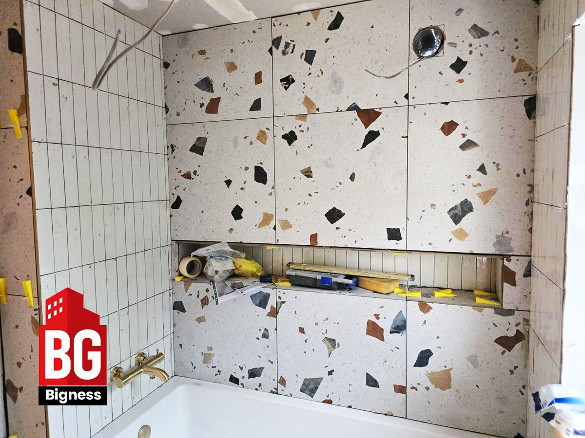 Bigness Group was appointed to design and install a modern terrazzo bathroom for a private London property, combining a clean minimalist look with premium materials and efficient layout design.