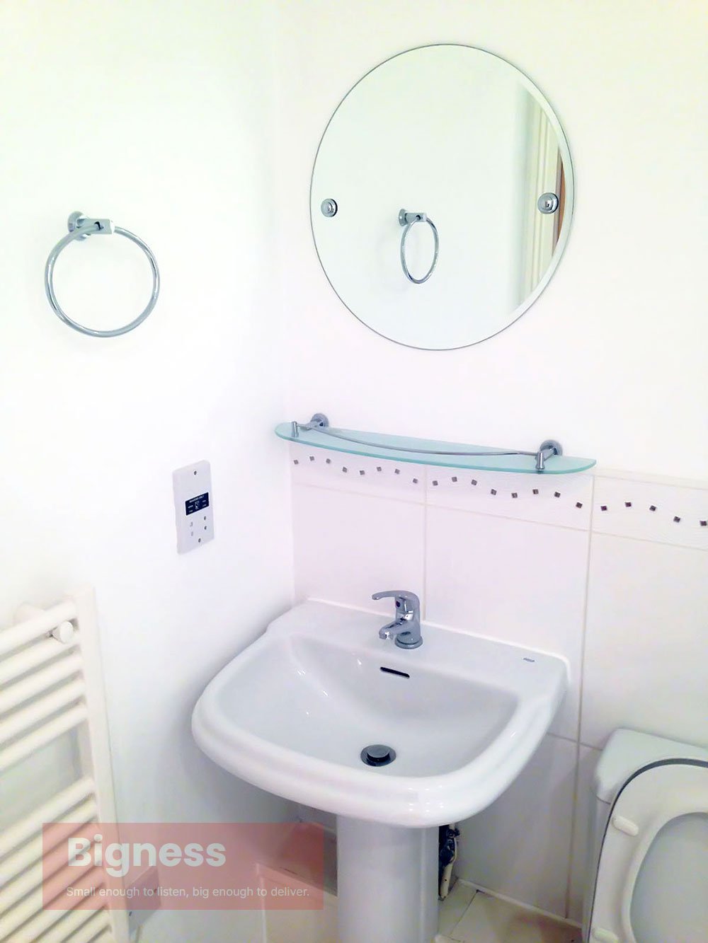 - Fitting of new bath, shower enclosure, vanity unit, and WC.