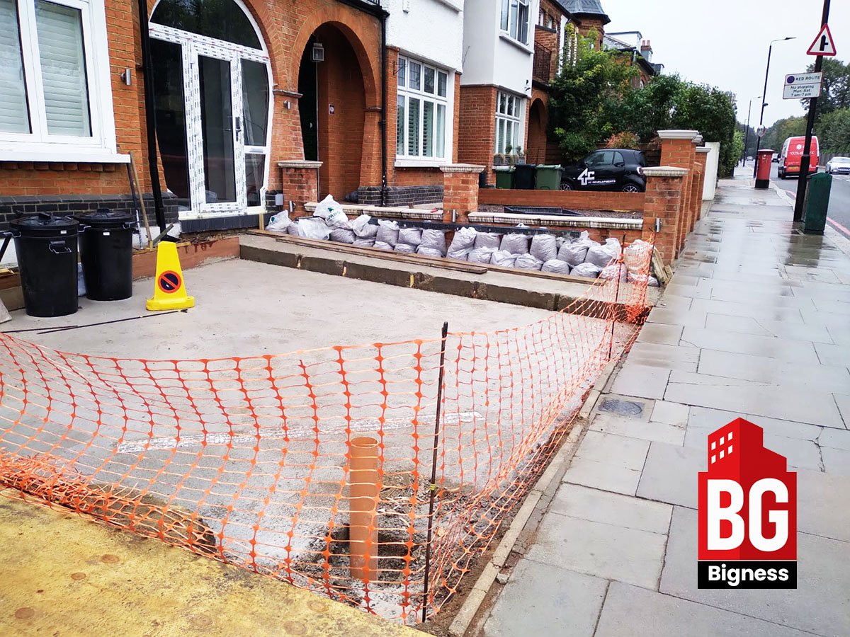- Excavation and preparation of the old driveway surface.