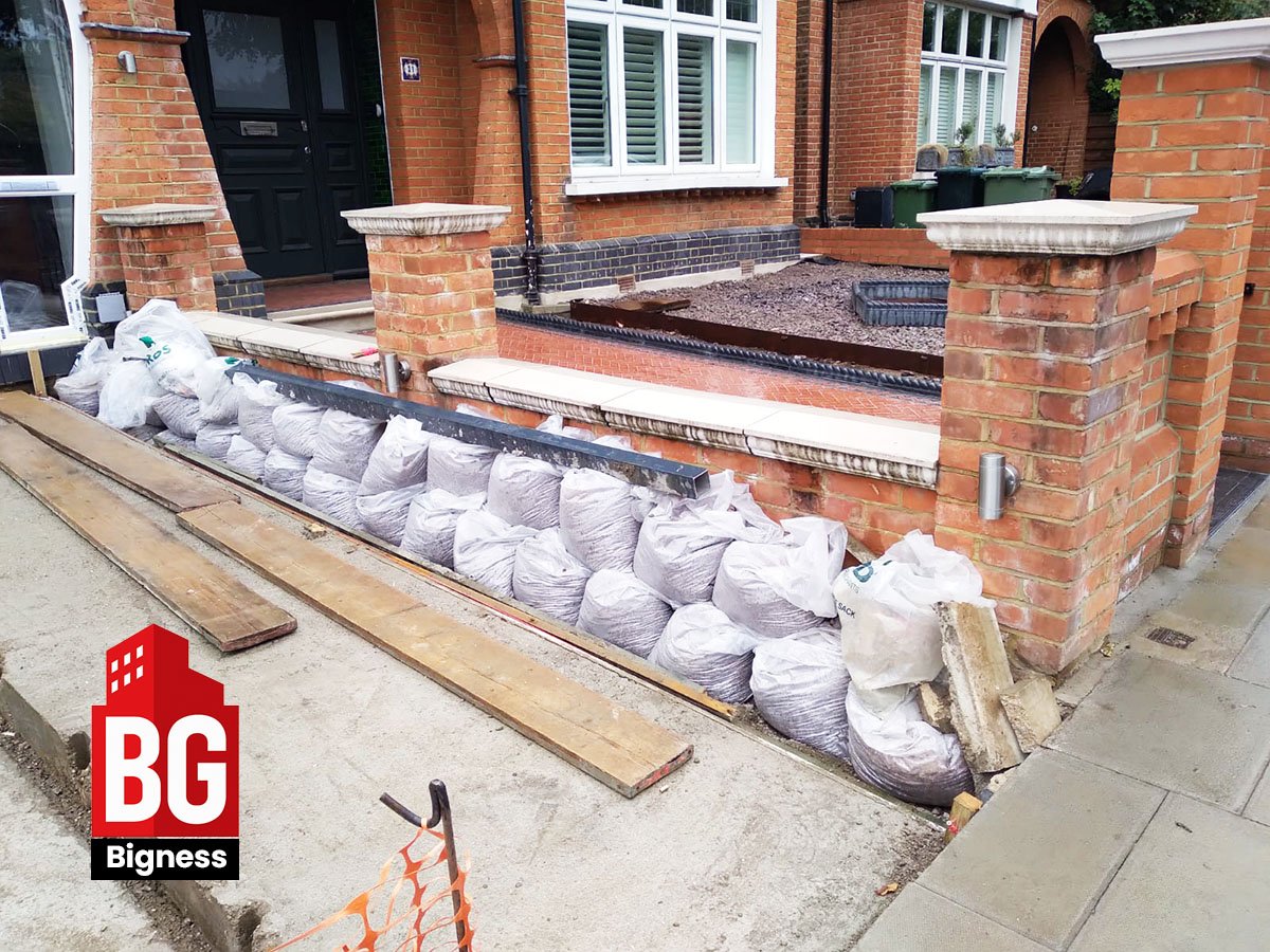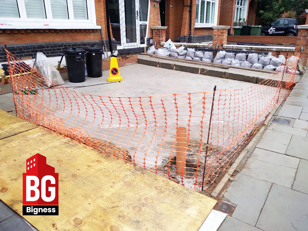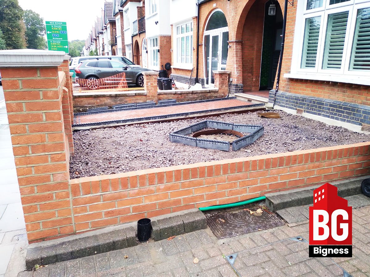 - Laying of reinforced sub-base for driveway stability.