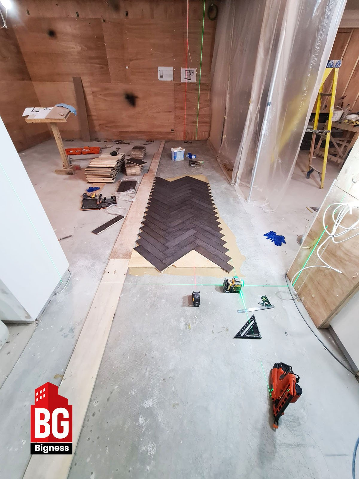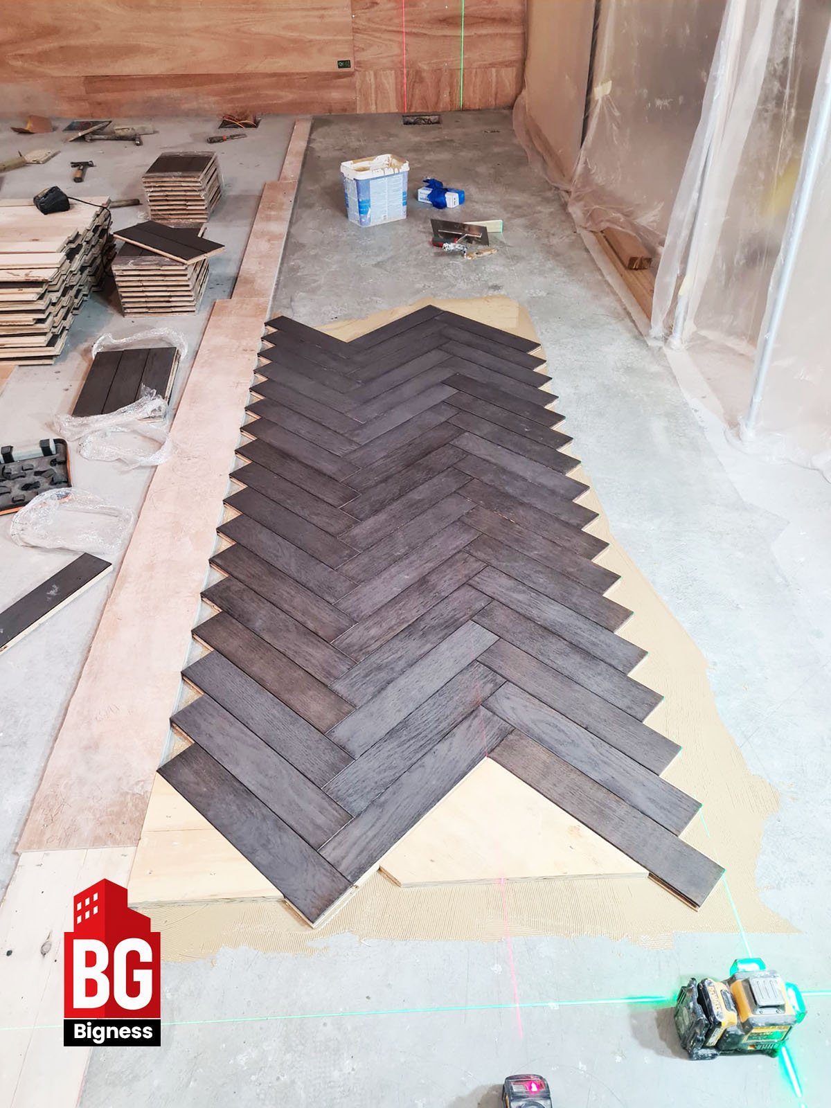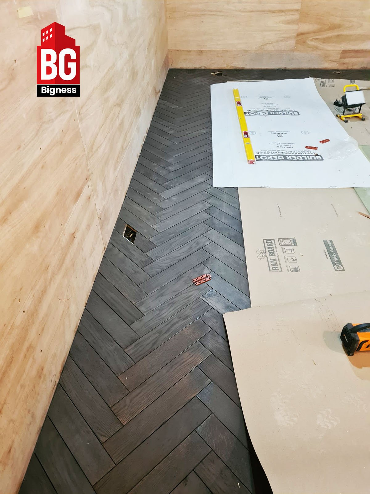 Bigness Group was commissioned to install a premium engineered wood herringbone floor as part of a full interior refurbishment.