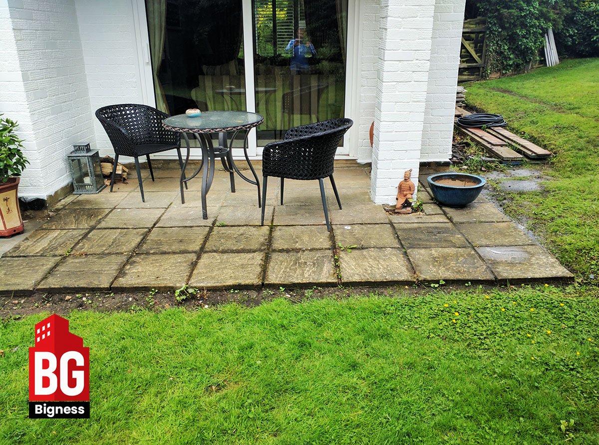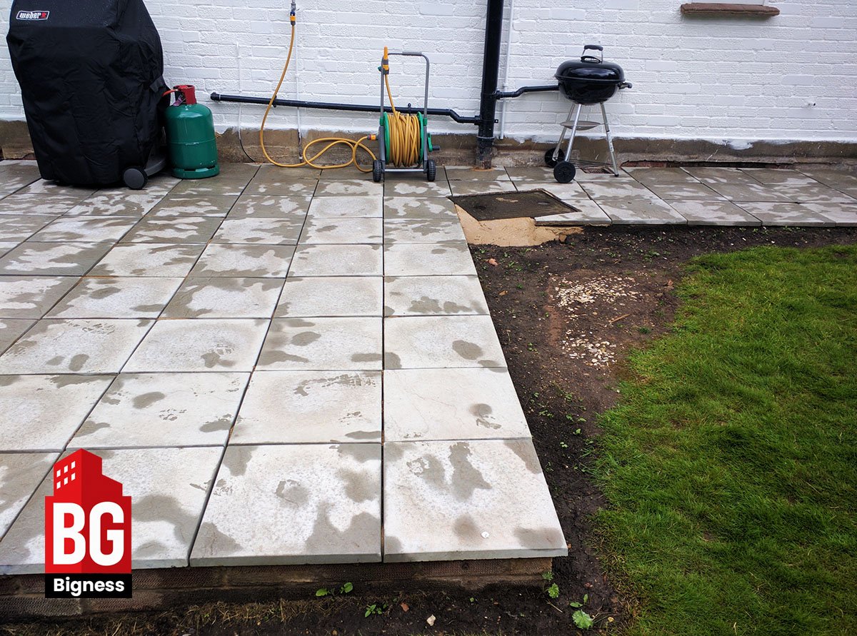- Replace the old patio with new, durable paving slabs.